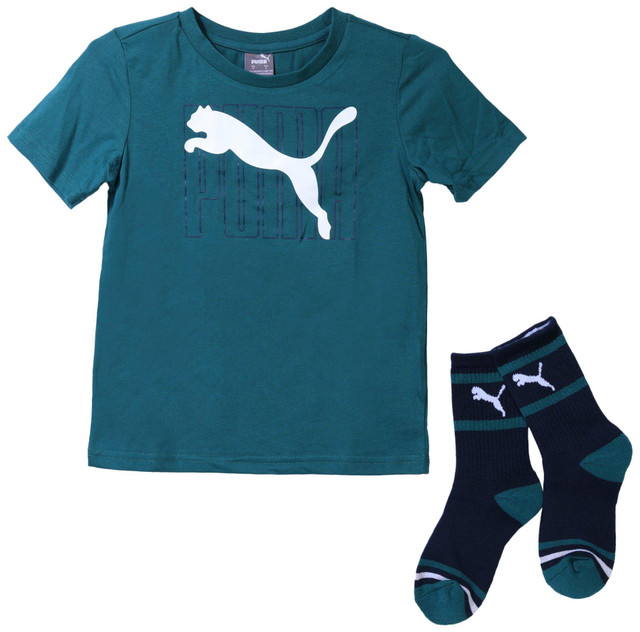 The Little Boys 2 Piece Shorts Set includes a playful short sleeve graphic shirt paired with soft crew socks. This comfy and fun combo is perfect for everyday wear, keeping little ones stylish and ready for action.