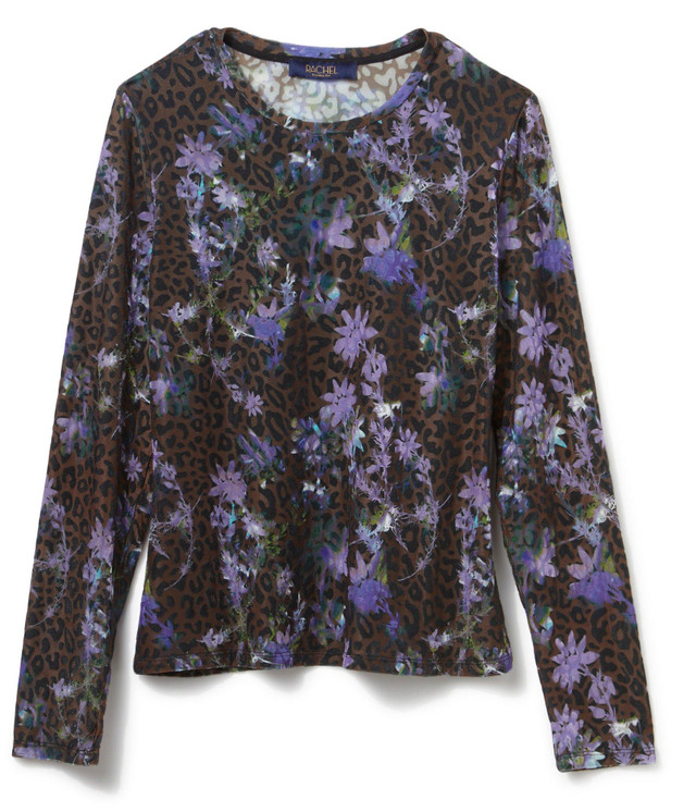 Elevate your everyday style with this Womens Long Sleeve Burnout Top, featuring a classic crew neckline and soft, semi-sheer fabric. The mix of bold animal print and delicate floral accents adds a unique, fashion-forward twist to this versatile piece. Fabrication 59% polyester, 30% nylon, 11% spandex
