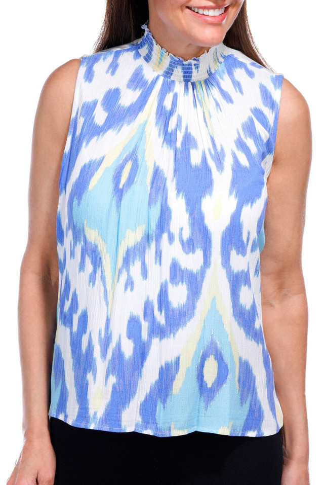 Enhance your wardrobe with this sophisticated Sleeveless Tank, featuring a chic mock neck and intricate smocked details. This versatile piece offers a sleek and stylish look, perfect for both casual and dressy occasions. Pair it with your favorite jeans or a skirt for an effortlessly elegant ensemble. Whether you're heading out for a night on the town or enjoying a relaxed day, this tank is a must-have addition to your collection