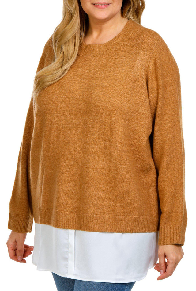 Introducing this Long Sleeve Sweater Top, a perfect blend of style and comfort. This top features a trendy layered look, giving you the appearance of a perfectly coordinated outfit with minimal effort. Crafted from soft, cozy fabric, it provides warmth and comfort for cooler days. Fabrication is 98% polyester, 2% elastane.