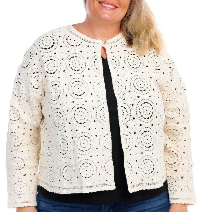 Add a touch of elegance to your wardrobe with this Long Sleeve Cardigan. Featuring an open crochet style knit, this cardigan offers a delicate and airy look that's perfect for layering. The neckline button adds a charming detail, allowing you to wear it open or closed for versatile styling. Ideal for both casual and dressy occasions, this cardigan combines comfort and sophistication effortlessly.