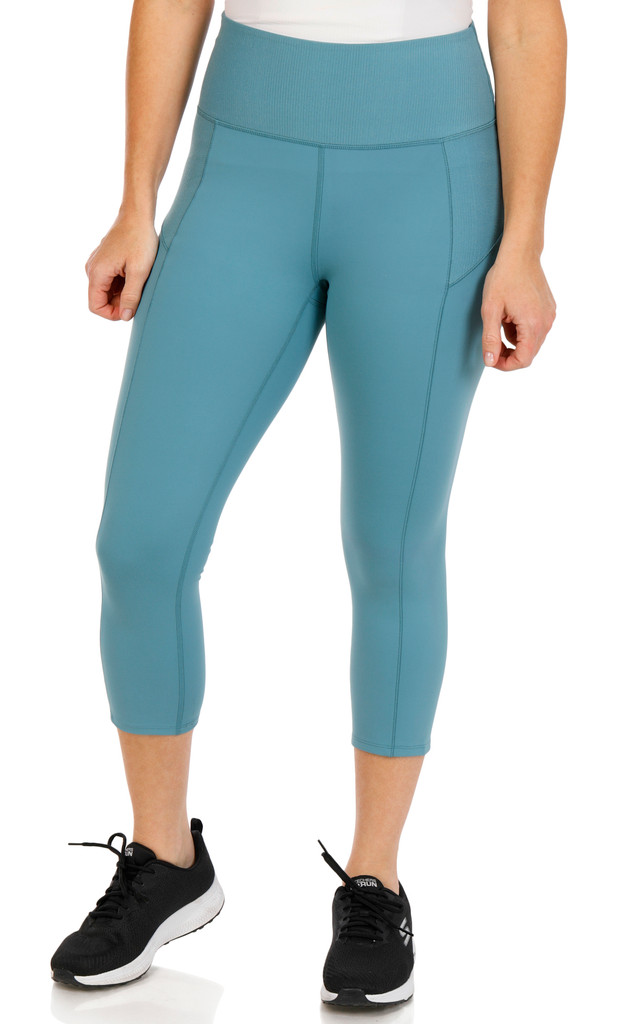 The Womens Active Carbon Peach Interlock Capri Leggings offer a sleek blend of comfort and performance. Designed in a solid color, they feature a carbon peach interlock fabric with performance stretch and moisture-wicking properties for all-day wear. Ribbed side panels add texture and style, while a 21-inch inseam provides a flattering, versatile capri fit. Fabrication 77% polyester, 23% spandex