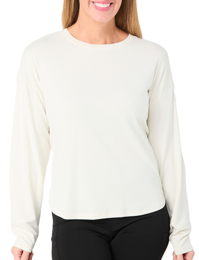 Stay cool and comfortable with this active long sleeve top featuring breathable mesh panels for enhanced airflow. Made from a flexible blend of 96% nylon and 4% spandex, it offers a soft, lightweight feel and a flattering fit for workouts or casual wear. Easy to care for just machine wash and tumble dry this top combines performance with everyday style.