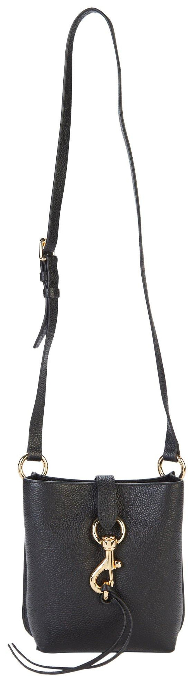 Small but mighty, the Megan Mini Feed Crossbody Bag is your new going out companion. This mini feed bag features soft genuine leather, gold tone hardware, an adjustable crossbody strap, magnetic snap closure, lined interior and 40 in strap drop. Measures 7.5 in x 3 in x 8 in.