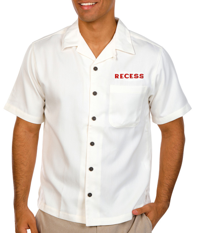 Refine your active style with the Mens Clubhouse Button Down Short Sleeve Shirt featuring soft solid fabric, a chest pocket with embroidered logo, and side split hem for ease of movement. Designed with stain release technology for lasting wear. Great for pickleball or casual outings. Fabrication is 75% polyester 25% rayon. Length measures approximately 28 in.
