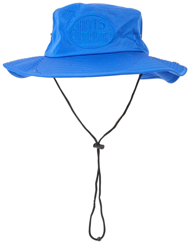 This Mens Boonie Hat features a solid color design on a 100% polyester fabrication, an embroidered logo on the front, a reinforced stitched brim, and an adjustable neck cord.