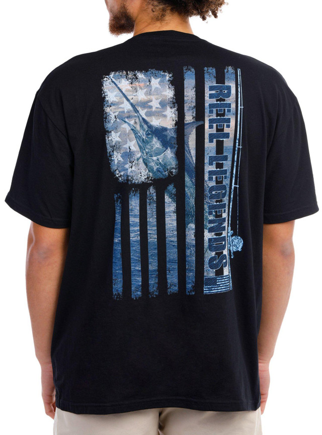 Introducing our Men's US Marlin Work T-Shirt, a perfect blend of cotton and polyester for comfort and durability. This stylish tee features a bold brand script on the chest and an eye-catching back graphic design. Ideal for casual wear or a day out on the water, this shirt combines artistic flair with everyday practicality. Elevate your wardrobe with this unique and versatile piece.
