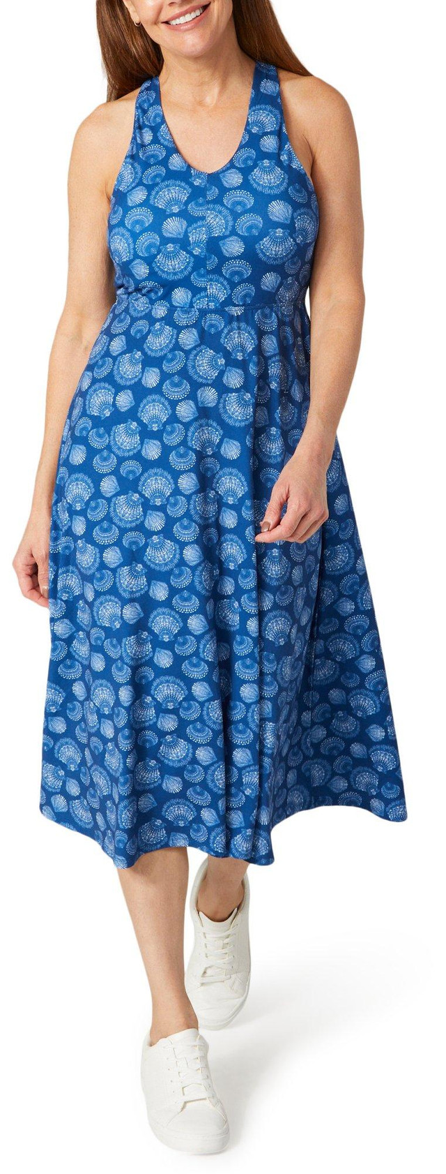 The Women's Stitched Sherry's Seashells Print Dress combines comfort, support, and coastal charm. Made from a soft blend of 88% polyester and 12% spandex, this 48-inch dress offers a flattering fit that moves with you. It features a built-in shelf bra with removable pads for added support and comfort. The stunning seashell print brings a beachy, relaxed vibe, while the stitched detailing adds a stylish touch.