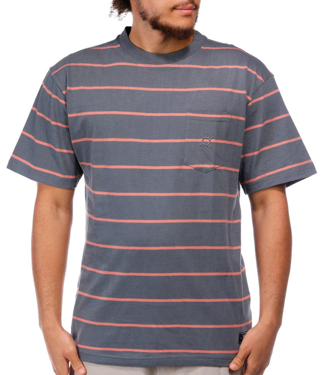 Introducing the Men's Striped Jersey Crew Neck T-Shirt, made from 100% cotton for ultimate comfort. This stylish t-shirt features a timeless striped design, short sleeves, and a classic crew neckline. The chest slip pocket adds a practical touch, making it perfect for casual outings or everyday wear.