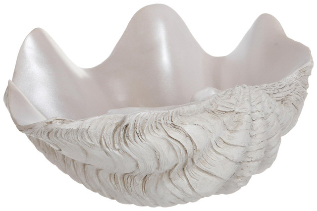This 13 inch Pearlized Shell bowl Home Accent is a stunning addition to any coastal or nautical-themed decor. Crafted with a beautiful pearlized finish, it captures the iridescent beauty of a seashell. Its generous size makes it a standout piece, perfect for display on shelves, mantels, or as a centerpiece. The elegant design and shimmering surface add a touch of seaside sophistication to your home, making it a captivating decorative item that evokes the charm of the ocean.