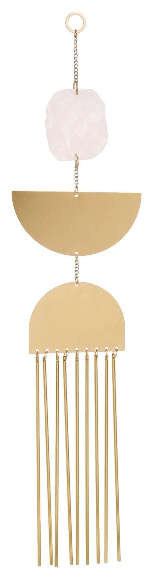 Transform your space with the celestial charm of the Nebula Wall Hanging Decor. This exquisite piece features brass and rose quartz accents, creating a harmonious blend of elegance and tranquility. The intricate design captures the beauty of the cosmos, making it a stunning focal point for any room. Perfect for adding a touch of sophistication and serenity to your home, this wall hanging decor is a true statement piece. Measures approximately 14 in x 3.5 in.