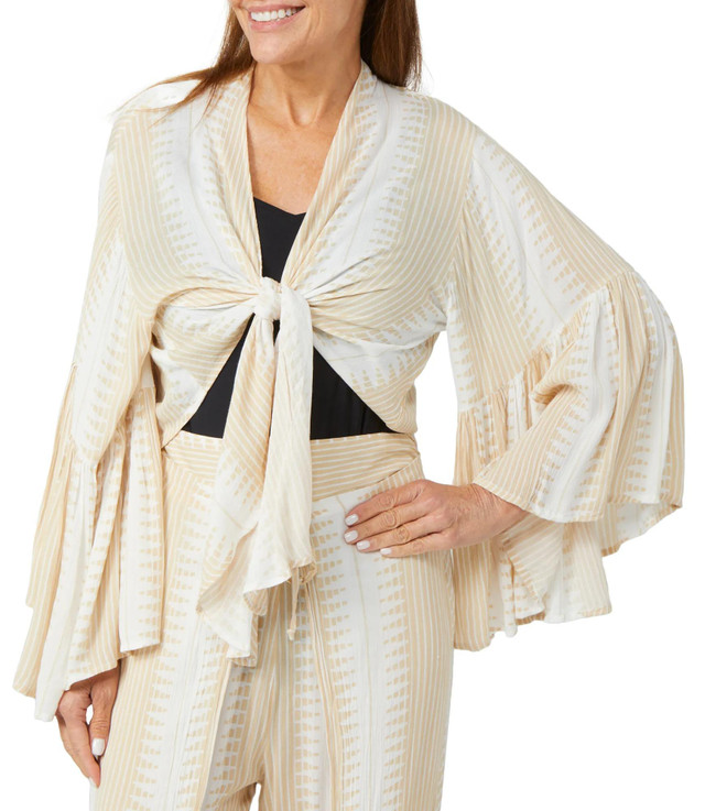 This soft rayon coverup top features 3/4 bell sleeves and an open drape silhouette, offering a relaxed fit with elegant flow. Lightweight and breathable, it adds a stylish layer to swimwear or resort looks, perfect for sunny days and breezy evenings.