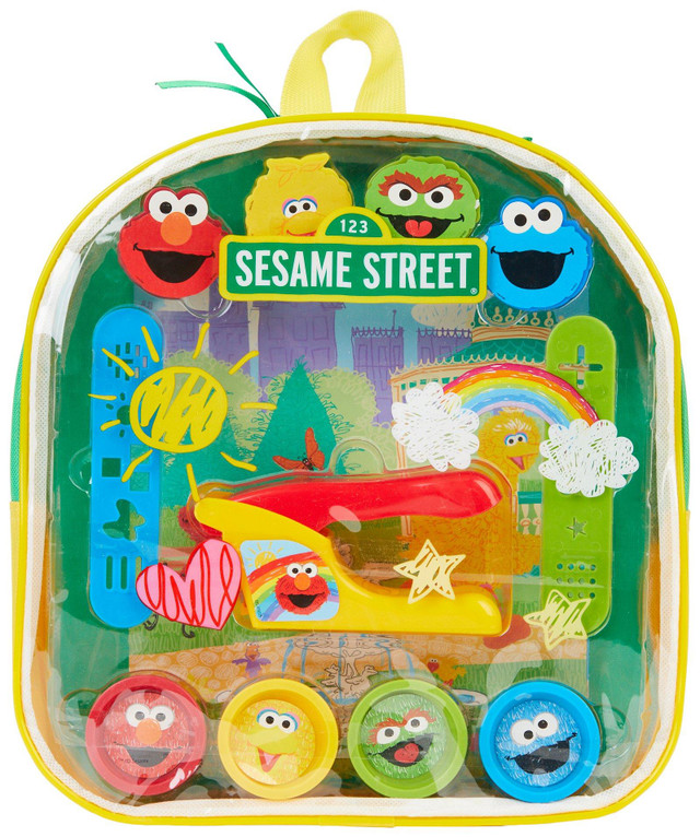 Encourage tactile play and creativity with the Kids Sesame Street Dough Backpack. Includes four 2 oz cans of non-toxic dough, four press molds, two double sided activity sheets, two extruder sliders, a press down extruder, and a themed backpack for easy storage and travel. Wipe clean with a damp cloth and mild detergent. Suitable for ages 3 years and up.