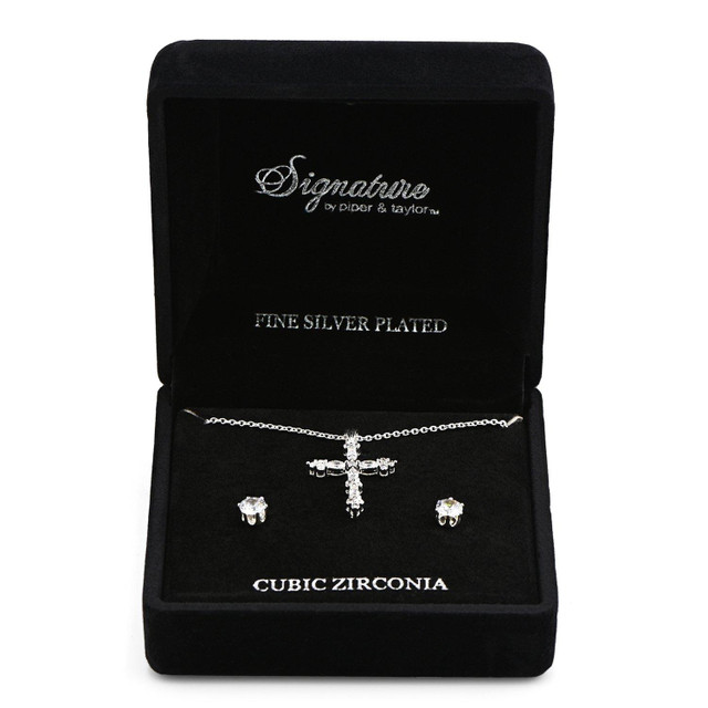 The Signature CZ Cross Necklace & Earrings Set features a timeless cross pendant, beautifully adorned with sparkling Cubic Zirconia stones, paired with matching CZ cross earrings. The set offers a sophisticated and elegant look, making it perfect for adding a touch of sparkle to both casual and formal outfits. Ideal for special occasions or as a thoughtful gift, this set combines faith-inspired design with modern brilliance.