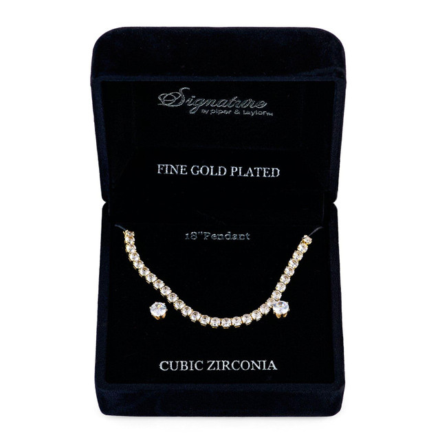 The Signature CZ Necklace & Earrings Set features elegant, sparkling Cubic Zirconia stones set in a classic design. The set includes a stunning necklace with a shimmering CZ pendant and matching earrings, offering a sophisticated and timeless look. Perfect for adding a touch of elegance to any special occasion, this set is a beautiful and affordable alternative to diamonds.
