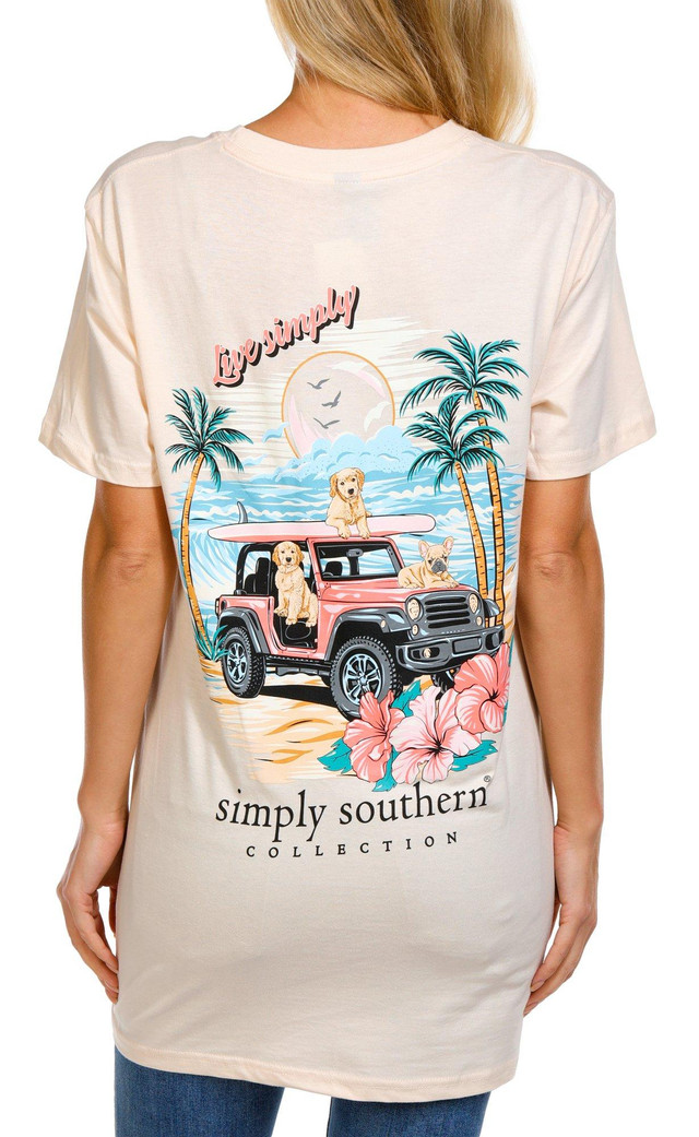 Introducing the Juniors Dog Jeep T-Shirt, crafted from 100% cotton for ultimate comfort. This stylish tee features a logo script on the chest and a vibrant beach-themed dog Jeep print on the back, perfect for casual outings. Designed with short sleeves and a classic crew neckline, it offers a relaxed fit and timeless appeal. Ideal for juniors who love fun and adventure, this t-shirt is a must-have addition to any wardrobe.
