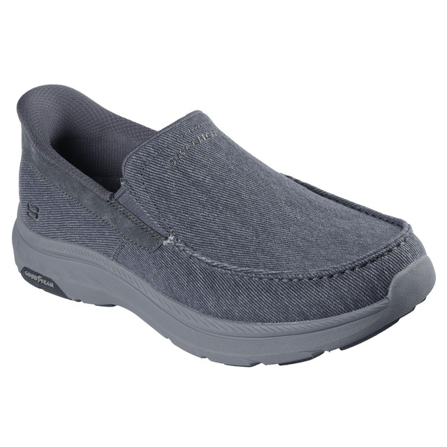 Classic laidback style and effortless comfort meet in Skechers Hands Free Slip-ins® Relaxed Fit®: Pollard - Reed. Designed with our exclusive Heel Pillow, this laceless slip-on features a mesh knit upper with gore panels, a charcoal-infused Skechers Air-Cooled Memory Foam® insole, Memory Arch for added support, and a durable anti-slip Goodyear® Rubber Outsole.
