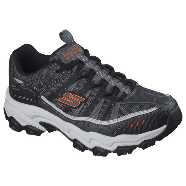 Explore wild terrain in comfort with Skechers After Burn M.Fit 2.0. This lace-up outdoor trail design features a leather, synthetic and mesh upper with a cushioned Skechers Memory Foam insole and Goodyear® Rubber Outsole.