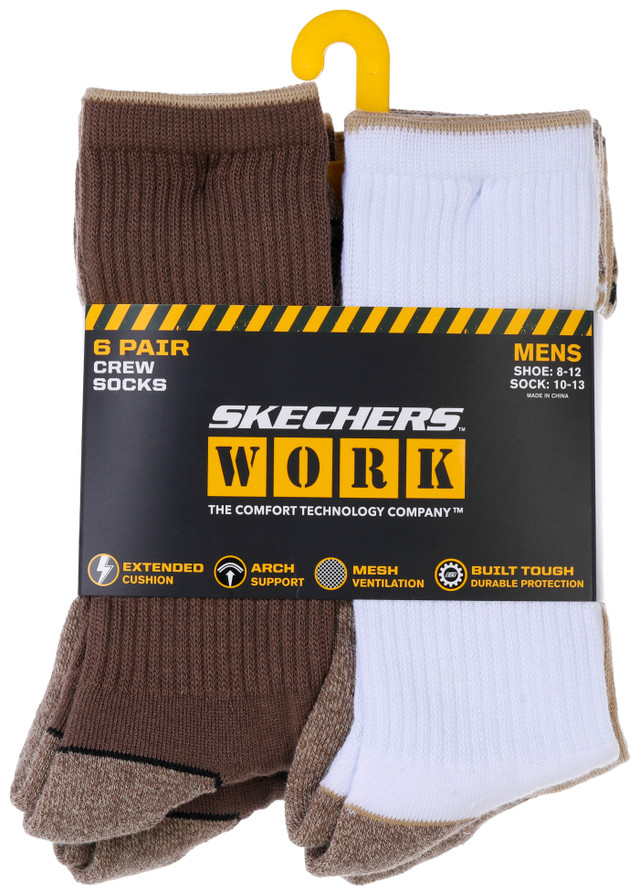 Sketchers Work Mens 6 Pk Extended Terry Crew Socks