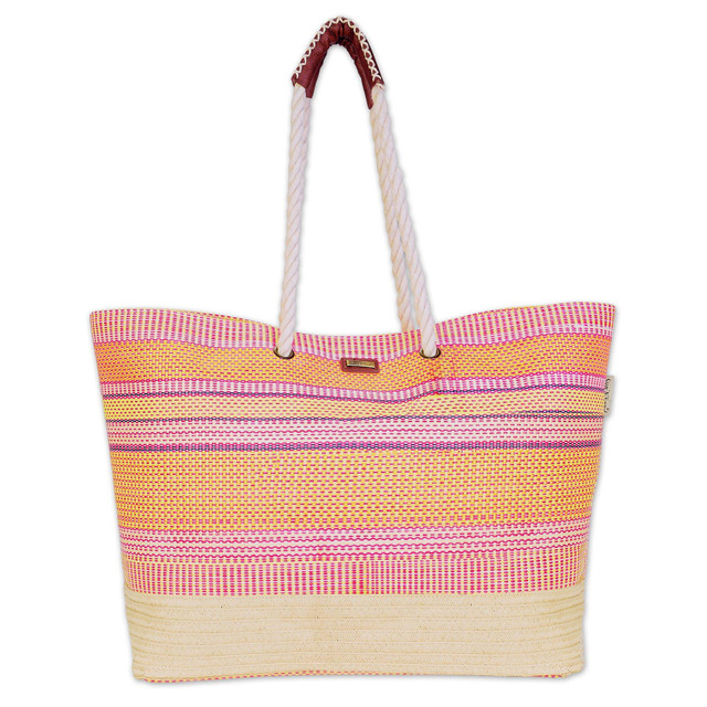 This Poly/Paper Straw Beach Tote Bag features a beautiful deisgn, on poly woven construction, dual rope handles, a back zipper pocket, a top zipper closure, and a lined interior.