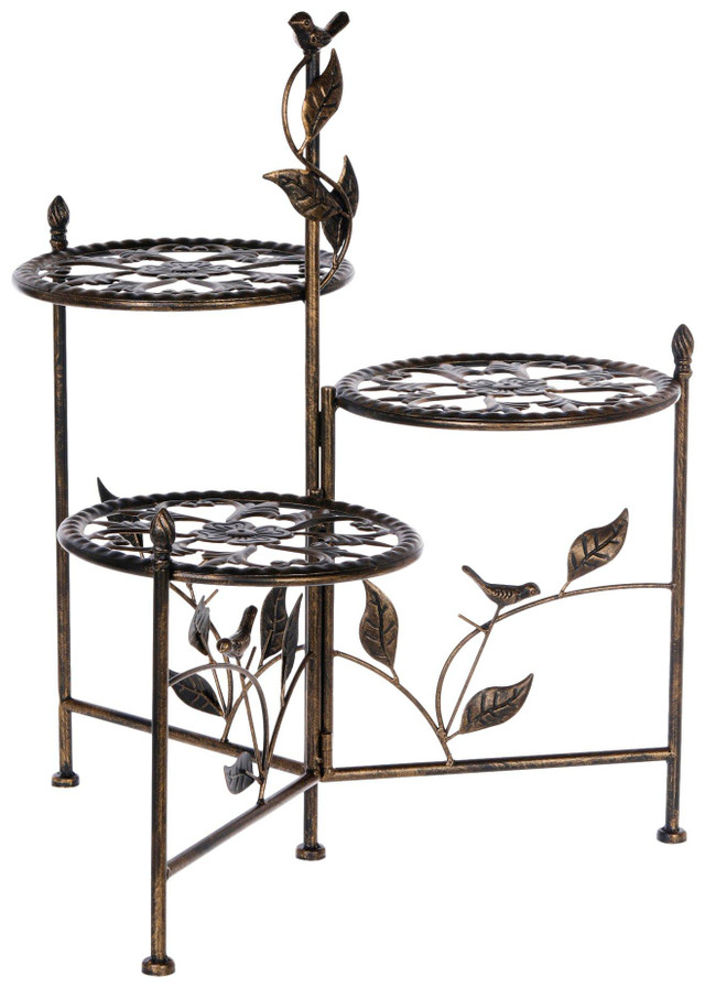 Showcase your favorite plants with this stylish 3-tier metal plant stand. Standing it measures approximately 24 inches , it features three graduated shelves designed to hold small to medium-sized pots. The sleek metal frame offers both durability and charm, making it a perfect accent for patios, balconies, or indoor corners.