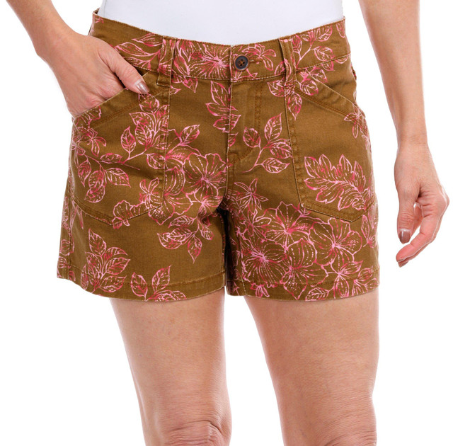 Stay cool and stylish with the Alix Palm Print Twill Shorts. Featuring a sleek camo print, these shorts are perfect for any casual outing. They come with double front and back pockets, providing ample storage for your essentials. Made from comfortable twill fabric, these shorts offer both durability and a relaxed fit. Inseam measures approximately 5 in. Fabrication is 96% cotton, 4% spandex.