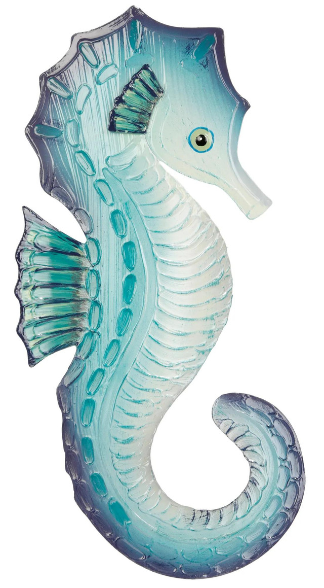 Add a splash of coastal charm to your space with this Blue Seahorse Wall Accent. Crafted with intricate detail and a weathered finish, it brings a breezy, ocean-inspired vibe to any room. Perfect for beach-themed décor or as a whimsical touch to your gallery wall.