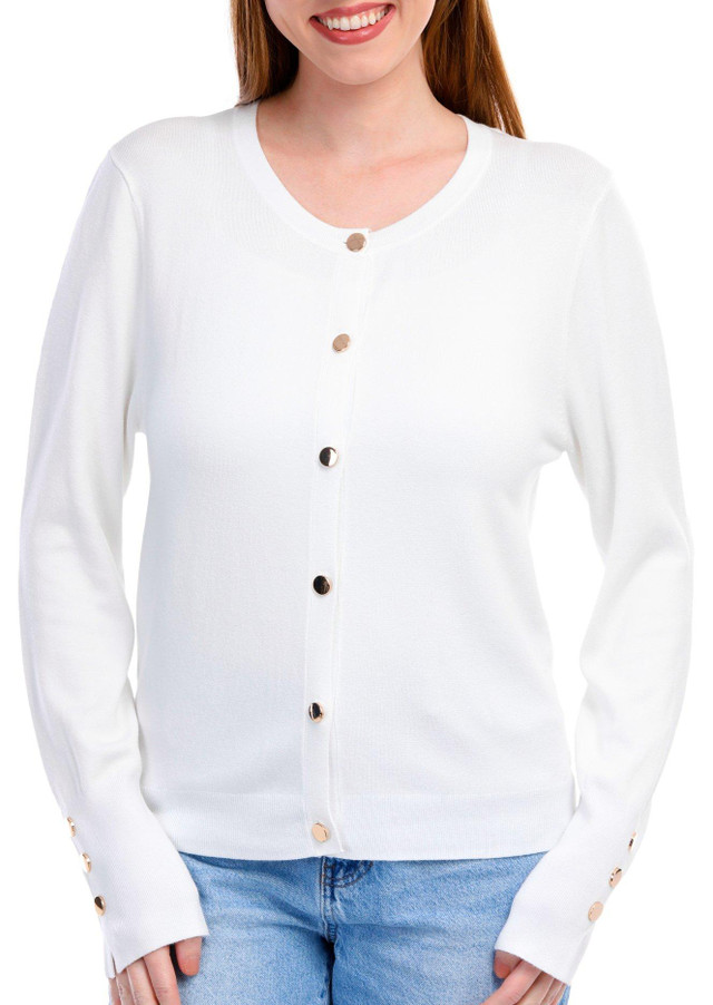 Wrap yourself in comfort with this Long Sleeve Buttoned Cardigan. Featuring a classic crew neck and crafted from soft, luxurious fabric, this cardigan is perfect for layering on cooler days. The buttoned front adds a timeless touch, making it a versatile piece that pairs effortlessly with any outfit. Fabrication 81% rayon, 17% nylon, 2% spandex.