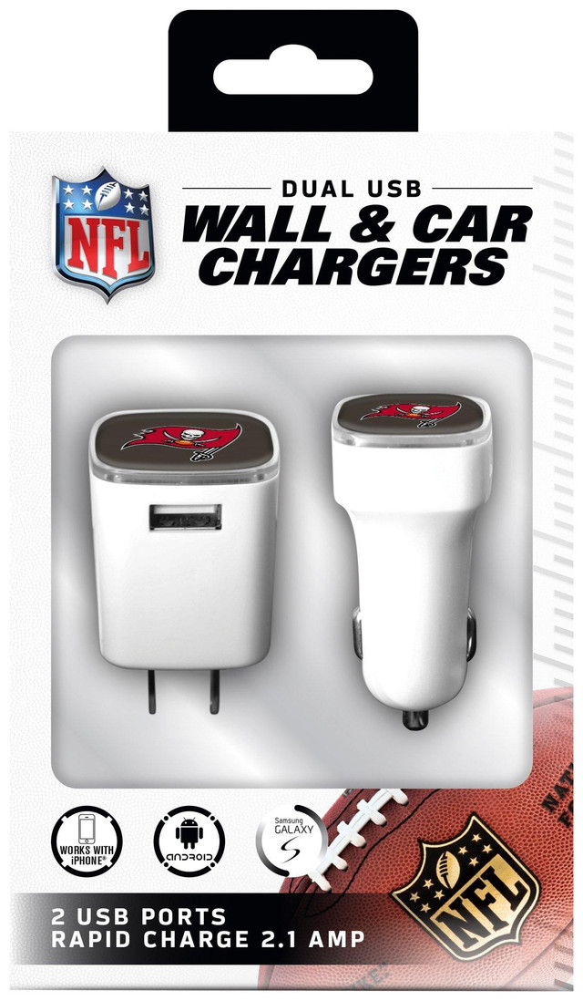 This 2 pack of chargers includes both of the essential charging blocks youll need to keep your devices juiced up all the time, while supporting your favorite team! Features a standard USB wall-block and car-port charging block.