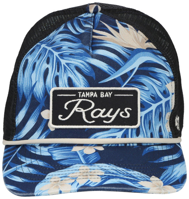 Show your team spirit in this adjustable snap-back baseball hat! It features a stylish and colorful print pattern design, rope brim detail, Tampa Bay Rays embroidered logo, and an adjustable snap-back closure.