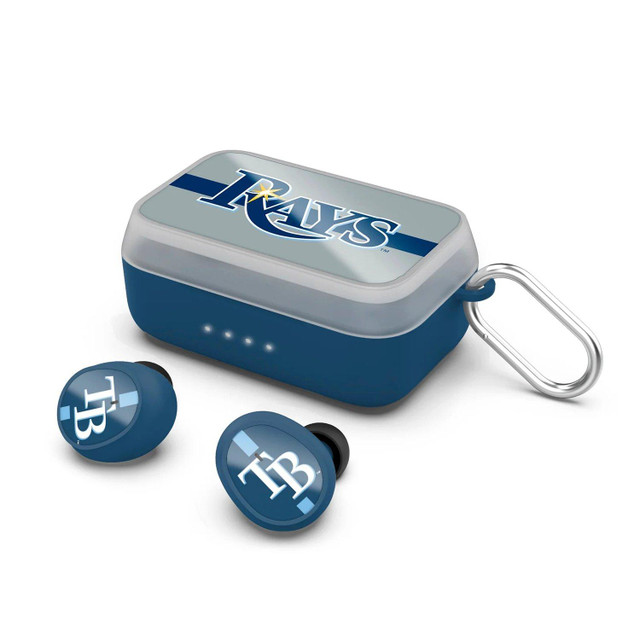 Take your team spirit anywhere with the True Wireless Earbuds featuring Tampa Bay Rays logo! Enjoy premium stereo sound and Bluetooth 5.0 technology for seamless connectivity with all Bluetooth-enabled devices. With a 10 ft. range, these earbuds let you listen to music, and audiobooks, or answer calls effortlessly. Get 3-4 hours of playtime per charge and stay powered up with the portable charging case.