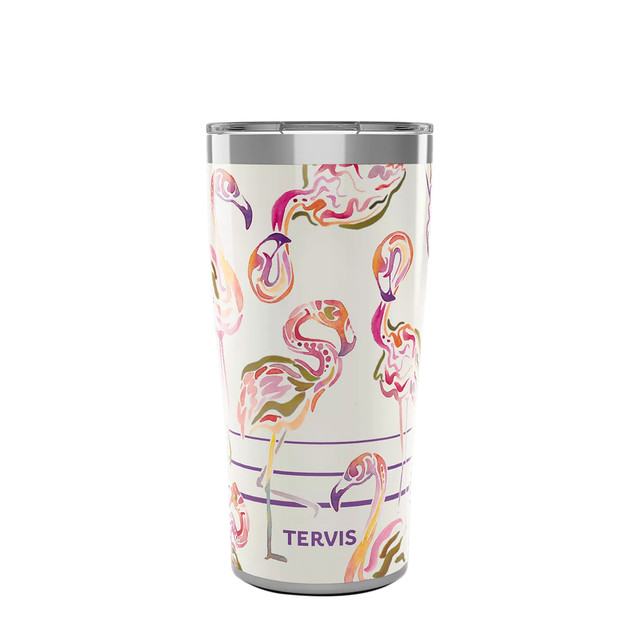 This 20 oz insulated tumbler is designed to keep beverages hot or cold longer while reducing exterior condensation. Made from durable, copper-lined 18/8 stainless steel, it resists impacts and wont retain tastes or odors. The vibrant Flamingo Swirl design is chip- and peel-resistant and dishwasher safe. Finished with a secure lid and a non-slip base, it's perfect for everyday sipping on the go.