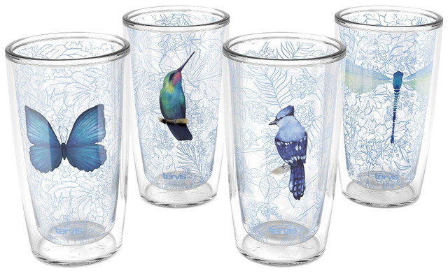 This 4 pack Sky High Tumbler collection features four individual designs printed and sealed between the walls of these unlined tumblers. These tumblers feature double-wall insulated construction that keeps drinks hot or cold longer and reduces condensation to prevent rings on your table. Strong, impact resistant BPA-free material means these tumblers can take a tumble without shattering and won't retain tastes or odors.