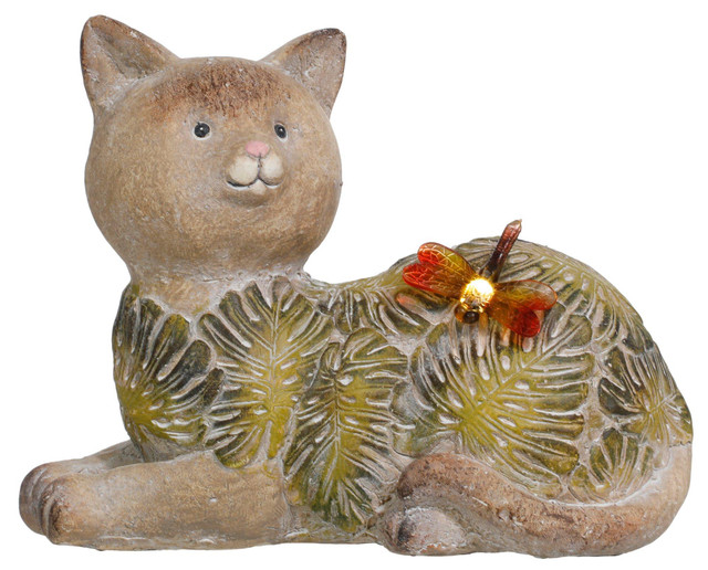 Brighten up your garden with the 13x11 Solar Palm Cat Garden Statue. This adorable statue features a playful cat lounging under a palm tree, adding a touch of whimsy to your outdoor space. Powered by solar energy, it lights up at night, casting a warm and inviting glow. Made from durable, weather-resistant materials, this statue is perfect for any garden, patio, or balcony, creating a charming and enchanting ambiance for your home.