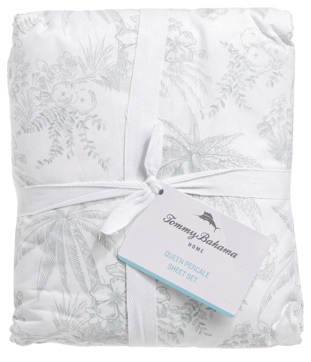 Add beautiful tropical style to your bedroom décor with a new printed sheet set from Tommy Bahama. Featuring a variety of tropical styles and color palettes, these sheet sets are great for easy layering with your favorite bedding. Featuring quality cotton construction, these sheets are crisp and breathable, perfect for a great night's sleep..