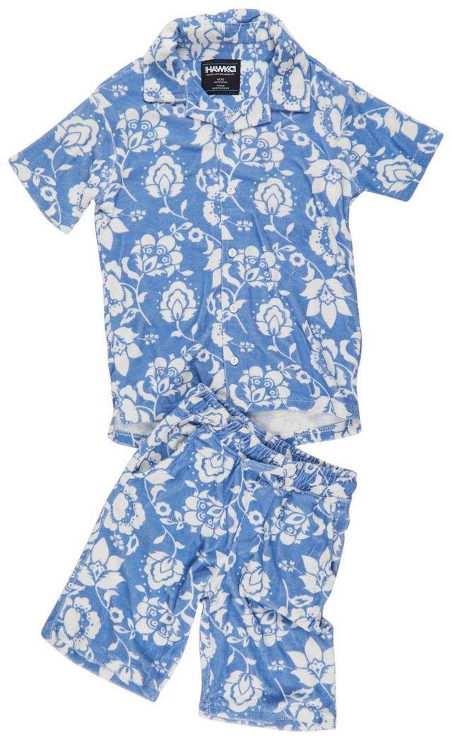 Introducing the Big Boys 2 Pc Towel Button Down Shorts Set, a stylish and comfortable choice for any occasion. This set includes a short sleeve button-down shirt with a collared neckline and a vibrant floral print, paired with matching shorts. Made from a soft cotton and polyester blend, it features a unique towel-like texture for added comfort.