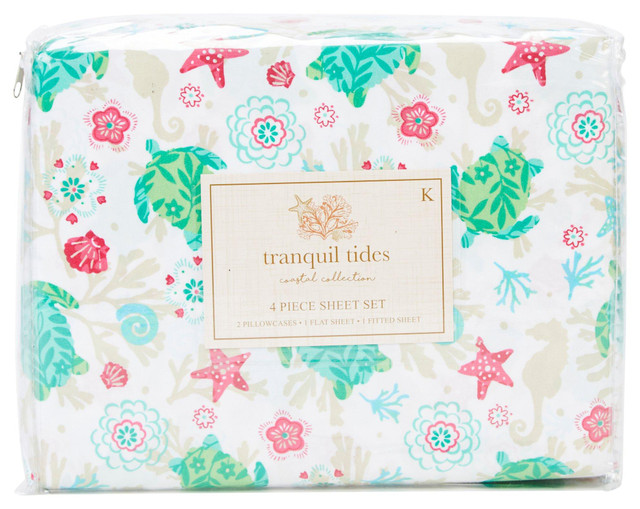 Upgrade your bedding with this 4-piece king sheet set. It includes 1 flat sheet measuring (108x102in + 4in), 1 fitted sheet sized (78x80in + 12in), and 2 pillowcases measuring (20x40in). Made from 100% polyester, the set is soft, durable, and easy to care for. Machine wash cold and tumble dry for long-lasting comfort.