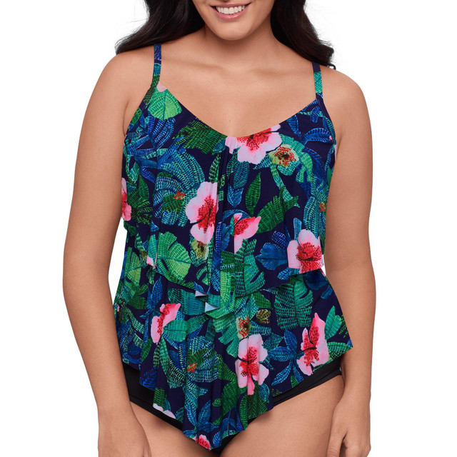 This unique tankini features flattering sewn-in cups and a full shelf bra to keep you supported during all your water activities. Designed for comfort, the Ronnie Tankini Top is fully lined in the back for additional opacity so you can swim with confidence. Adjustable straps allow you to find your ideal fit, while the double-tiered ruffle hem adds a delicate touch of femininity.