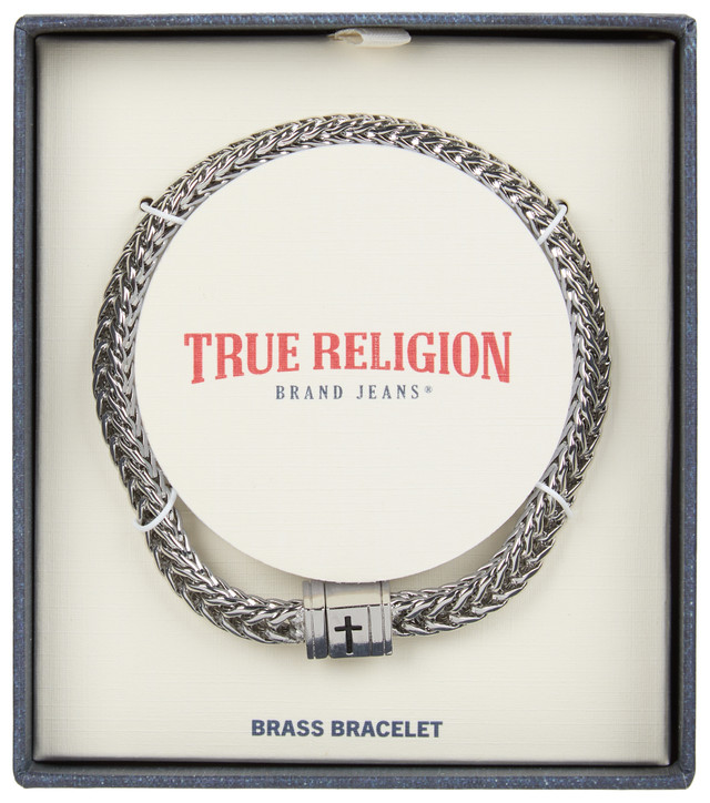 True Religion Mens Brass Enamel Cross Chain Bracelet