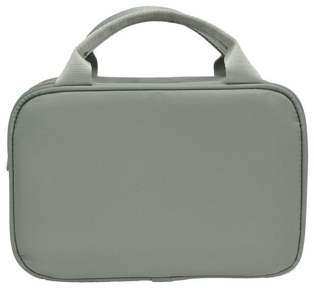 Keep your essentials in order with this versatile nylon travel organizer, featuring a zipper closure, dual hand straps, and sleek silver hardware. Inside, you'll find zip mesh compartments, a zip pocket, and one clear zip compartment for easy visibility. Compact yet spacious & perfect for travel or everyday organization. Measures: 9.62 x x 4 x 6.5 Inches