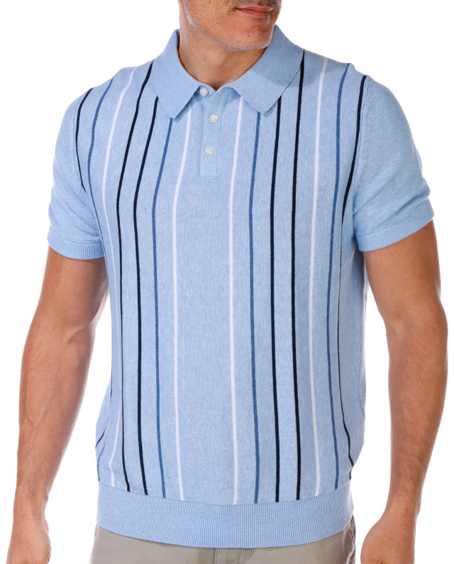 This Short Sleeve Sweater Rib Knit Polo Tee is a perfect blend of comfort and style. Made from soft rib knit fabric, this polo tee offers a refined look with its classic striped pattern. Ideal for both casual and semi-formal occasions, its breathable material ensures you stay comfortable throughout the day.
