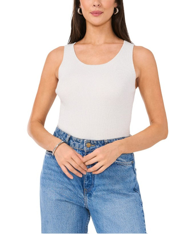 This sleeveless sweater tank from Vince Camuto is a must-have. Simple and chic, this ribbed knit tank top features a classic scoop neckline and a fitted silhouette for effortless style. Perfect for layering or wearing solo with your favorite jeans or skirts.