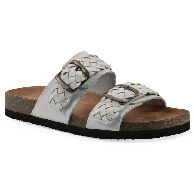 Bring a touch of boho chic style with the Hey Hey slide sandal from White Mountain Footbeds. The braided straps not only add a unique, handcrafted flair but also provide a secure fit. Underneath the straps there is an elastic and Velcro fastener to make it easy to adjust for a secure customizable fit. The Hey Hey slide sandals are perfect for a modern, laid-back look.