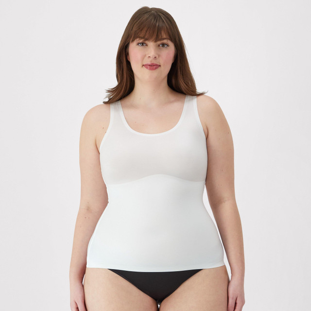 The Maidenform Comfort Devotion® firm control tank top is your secret to a shaped silhouette. It targets your tummy with a two-ply panel and has back control for the smooth, sleek look you want. This shapely firm-control tank is a bra optional style, with light bust support for the flexibility to wear a bra or go braless. The Cool Comfort® fabric is silky, stretchy, and exceptionally soft, wicking moisture away from your skin to keep you cool and comfortable all day.