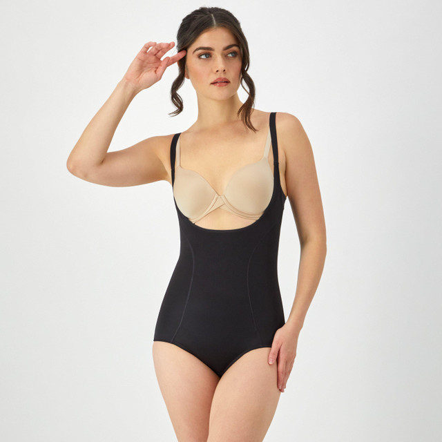This body-smoothing shapewear from Maidenform® is designed to solve all kinds of challenges. The ultra-firm briefer eliminates back bulges and shapes your waist for smoothing under clothes. It targets your tummy, waist, and rear with built-up back coverage, to sculpt your contours for the sleek appearance you want. The open bust design gives you flexibility for the customized fit, lift and support you want. The comfortable, smooth stretchy nylon and elastane fabric sculpts your midsection.
