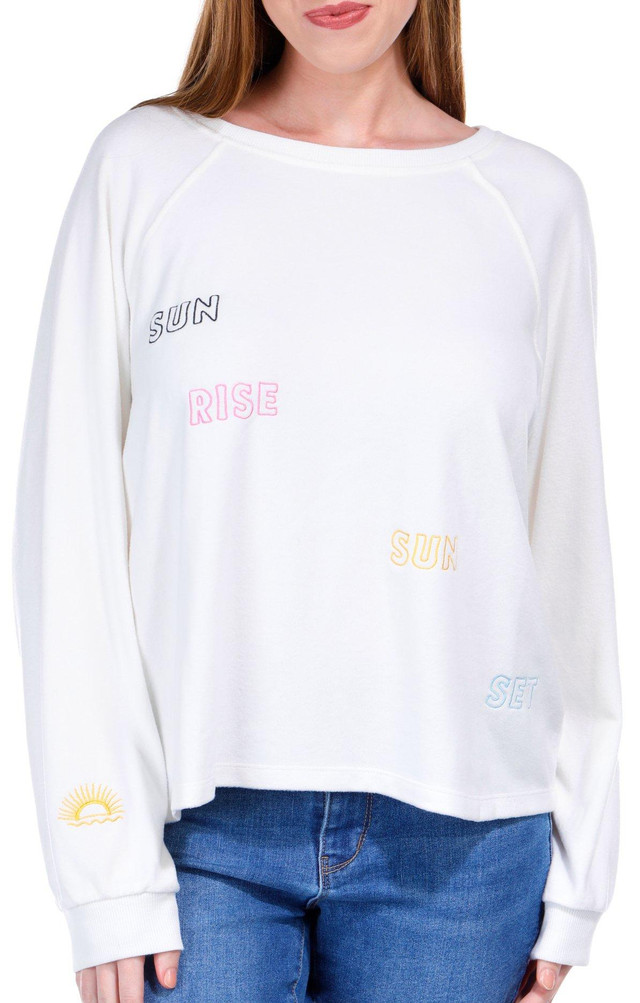 Introducing the Women's Sunrise Sunset Sweatshirt, crafted from a blend of polyester and spandex for a comfortable and stylish fit. This sweatshirt features a chic solid color and an embroidered Sunrise Sunset script that adds a touch of elegance. The crew neckline and long sleeves provide a classic look, while the soft fleece feel ensures warmth and coziness. Perfect for casual outings or relaxed weekends, this versatile sweatshirt is a must-have addition to your wardrobe.