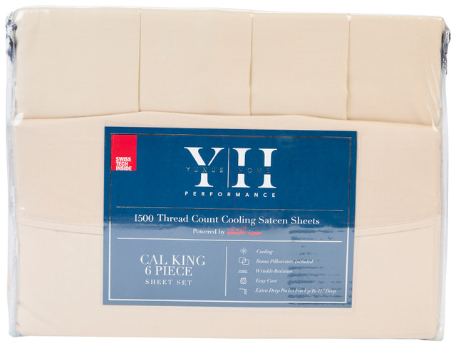 Experience ultimate comfort with the 1500 Thread Count Cooling Sateen Sheet Set. Designed for a cool and luxurious feel, this six-piece set includes bonus pillowcases for added value. The wrinkle-resistant fabric offers easy care and a smooth finish, while extra deep pockets fit mattresses up to 17 inches for a secure fit. Perfect for year-round comfort, these sheets combine elegance, durability, and convenience for a restful nights sleep. Fabrication 52% cotton and 48% polyester.