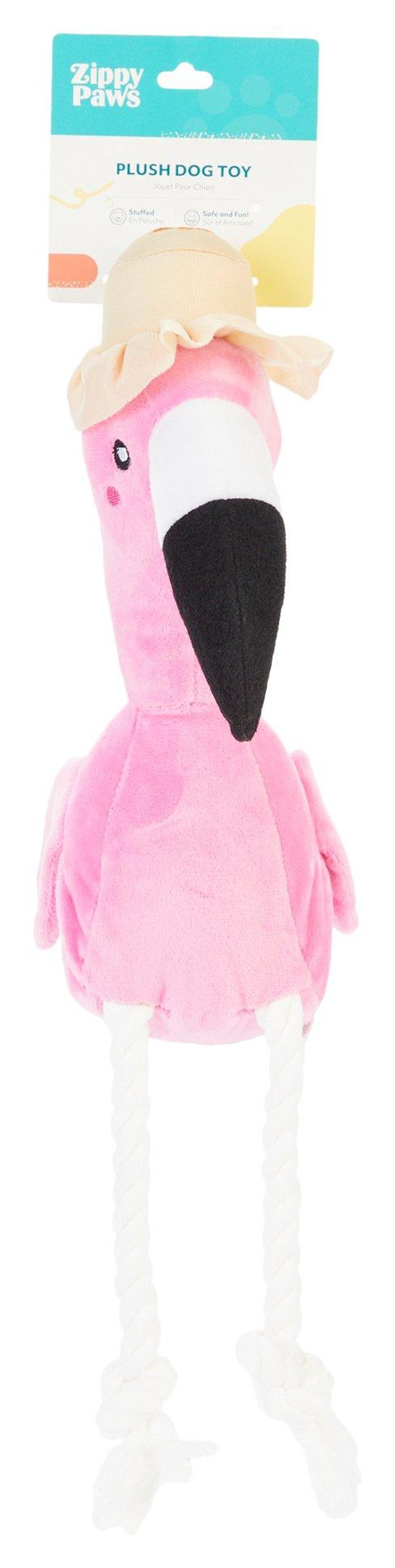 Add fun to your pets playtime with the 19 in Playful Pal Flamingo Plush Dog Toy featuring rope legs, a squeaker in the body and crinkle fabric in the wings for added sensory engagement. Soft plush construction ensures safe indoor play and gentle chewing. Fabrication is 100% polyester. Measures approximately 19 in x 10 in x 4 in.